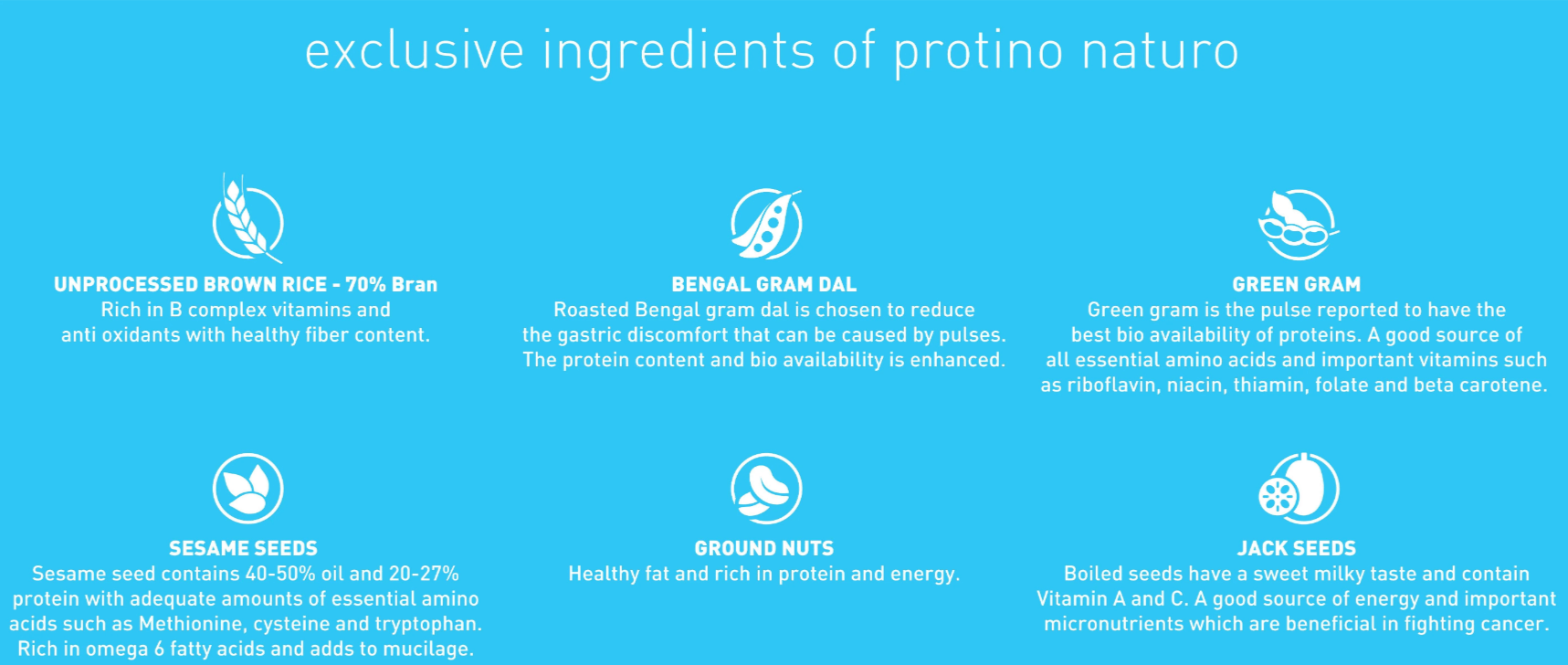 • Bengal Gram – Enhances the protein content while reducing the gastric discomfort caused by pulses.