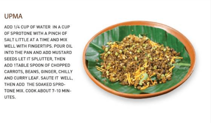 • Sprouted Green gram (Pulses – 13%) – Good source of Protein, Fiber, Potassium, and Sodium.